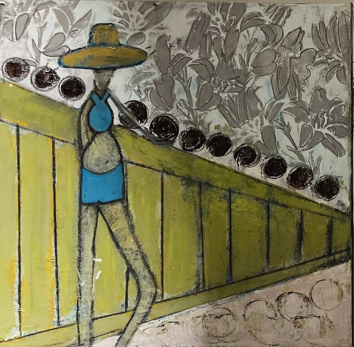 14” x 14” mixed media painting on gallery canvas. Acrylic paints, pencil and oil pastel.
